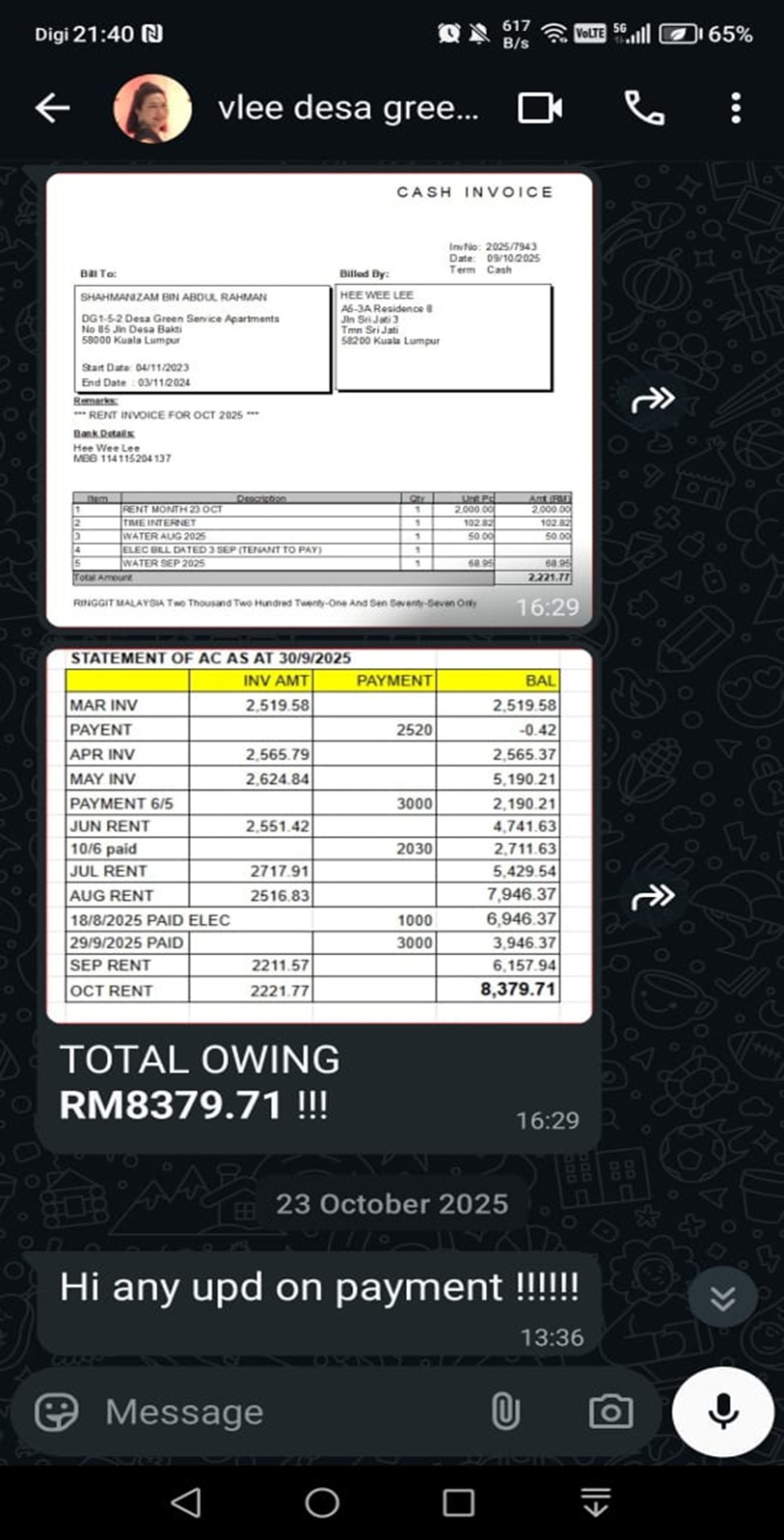 Alhamdulillah, dengan pelbagai usaha, saya akhirnya berjaya menyelesaikan hutang tersebut. Namun begitu, jumlah tunggakan sewa rumah terus meningkat dan saya kini telah menerima notis untuk mengosongkan rumah pada hujung November 2025 sekiranya bayaran tertunggak tidak dilunaskan.
